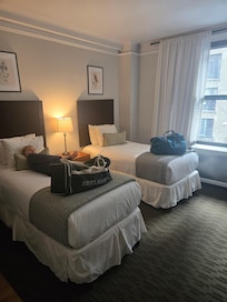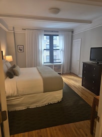No real view. Good price for the area for sure. It’s a Best Western Parading as a niche hotel in manhattan. The room size is spectacular. Fit and finish leaves little to be desired. Overall for a come and go place while exploring the city on a budget it’s a great fit. If you are looking for an upscale experience this isn’t the place. I’m willing say for me…. The area is perfect. It’s within walking distance to everything the city has to offer. The area is quiet and the amenities make up for the age or “lip stick on a pig” vainer the rooms and hotel exterior offer. The complementary breakfast is a nice added touch however the options are extremely limited so unless you want mini pastries and children’s sized cups of OJ I’d suggest a local restaurant in the area. I will say the hotel is located in between two fantastic restaurants. Toscana 49 and ABIATA. If you are a first timer like I was this hotel was a perfect stepping stone into seeing just want the city has to offer and also into seeing what you are truly missing. Located literally steps from the Waldorf Astoria it’s almost as if two worlds collide. Stay at this hotel and walk 3 minutes up 49th….you’ll understand what I mean. Honestly for the price and what was offered. It was a great option for a family like mine to experience the city. I would have hoped for more luxury but as they say. You get what you pay for and With the Bayard I’d venture to say you get a little more. Happy travels.
