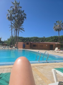 When I arrived at the hotel I was allocated a ground floor room and the glass sliding doors onto the small balcony could not be locked. I advised the male receptionist that I could not stay in the room as it was not secure. He deemed indifferent to my concerns and said he was unable to allocate me another room as the hotel was full. He said he would get someone to look at the sliding doors. After 30 minutes no one had appeared. I returned to reception to be told that nothing could be done that evening. I advised the receptionist I would not be sleeping in a insecure ground floor room. 15 minutes later he returned and advised me the room 20 (2 doors down from my room) had miraculously become available. After posted a review of my treatment at reception on Hotel.com I moved into Room 20. The first thing that had struck me about both Room 18 and 20 was the level of noise coming from the pool area (Disco, Bingo etc). I was assured that the music would stop at 11pm. It didn’t stop until midnight every night. This was my fault had I done more research before booking I would have seen the review about “bring your EarPods if you want a decent sleep. The following morning the reception staff advised me I would be moved to a room on the 4th floor at no extra charge. I was very grateful. It was a nice room, safe but just as noisy as the others. Lesson learned read hotel reviews. This is a hotel for families with children and not for individuals looking for a quiet few days in the sun.
