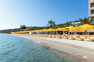 Sarimsakli Beach is located near D Resort Ayvalık, which provides a free breakfast buffet, a poolside bar, and a terrace. This hotel is a great place to bask in the sun with a private beach, sun loungers, and windsurfing. Treat yourself to a facial, a hot stone massage, or a body wrap at D Spa, the onsite spa. At the two on-site restaurants, enjoy breakfast, lunch, dinner, kids' meals, and Mediterranean cuisine. Enjoy the health club, as well as activities like water skiing, kayaking, and surfing/body boarding. In addition to a coffee shop/cafe and a garden, guests can connect to free in-room WiFi.